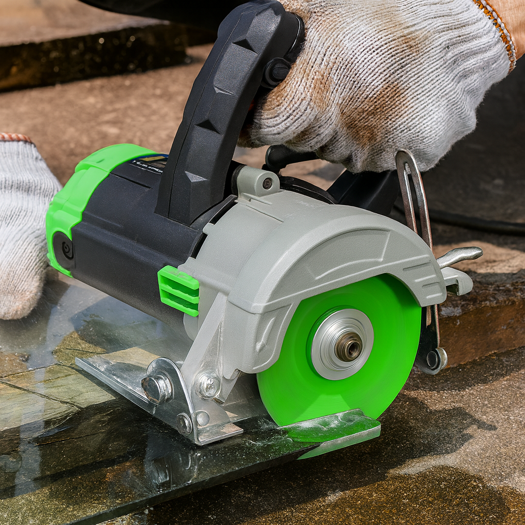 Está diseñado con amoladora angulas de 100. Es fácil de instalar y fácil de usar. Puede soportar los requisitos de corte seco/húmedo y corte c" de larga duración.